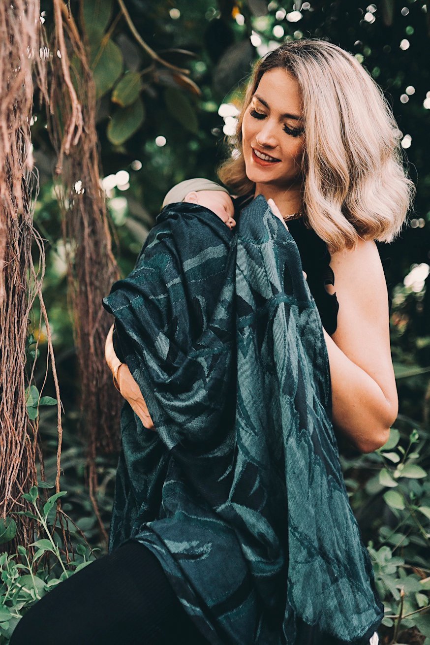 Эта уникально красивая приятная ткань с дизайном пальмового листа - настоящий уловка для глаз - будь то в детской кровати, в коляске или в виде стильного шарфа вокруг шеи мамы!