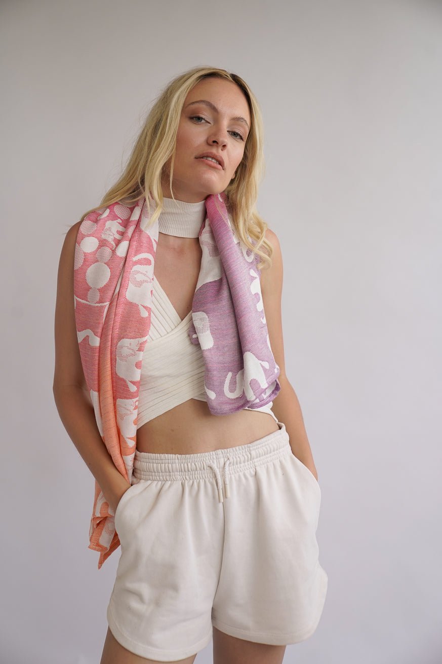 Четырехслойная тканая, эта приятная ткань отлично служит легким летним одеялом, в котором хранится тепло через четыре слоя! Идеально подходит для текущей погоды❤ А также для мамы: мега -шарф, который кричит на лето и веселье! 😎